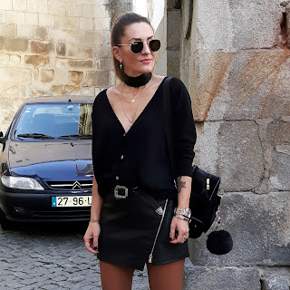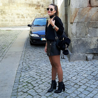 Óculos de sol / Sunnies - Ray ban | Casaco de malha e saia / knit and skirt - Zara ( old ) | cinto / belt - Tiffosi | mochila / backpack - Aliexpress | botins / boots - Zara .