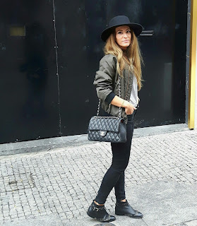 Olá meninas! ! Hoje venho partilhar convosco mais um look com chapéu, bomber , t-shirt básica, jeans e botins rasos, espero que gostem ;)
